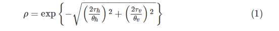 式中,ρ为两点之间的相关函数;τ 和τ 分别为水平和垂直方向上两点之间的绝对距离; θ 和θ 分别为水平和 向的相关长度,其比值反映两个方向相关性差异。