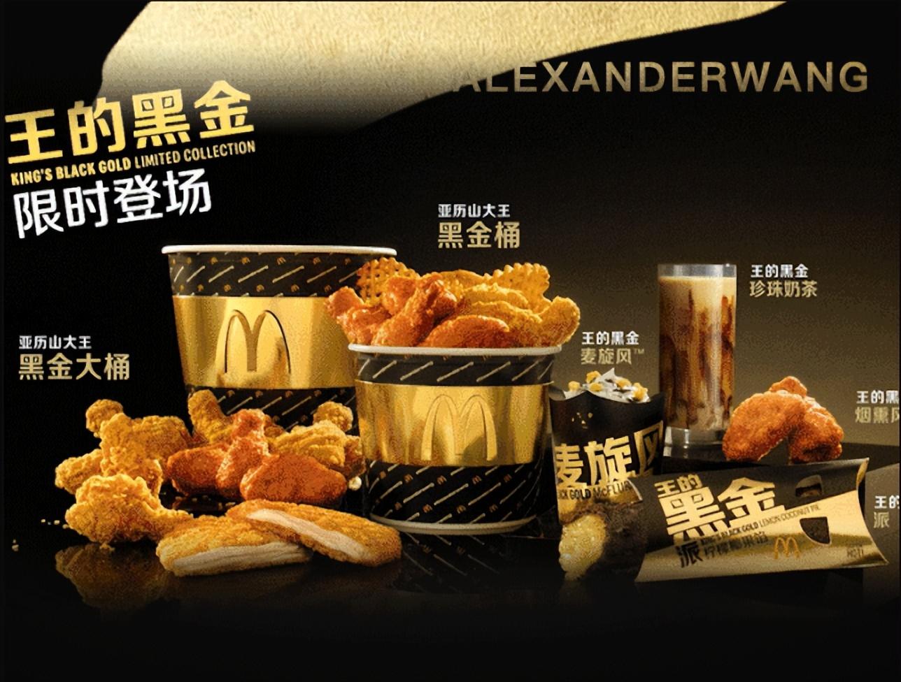 当时,麦当劳在全国超过3200家门店推出了时尚简约的“黑金桶”系列套餐,而麦当劳则是在官方旗舰店上,限量售卖了由Alexander Wang亲自操刀的黑金篮子及黑金M手包。