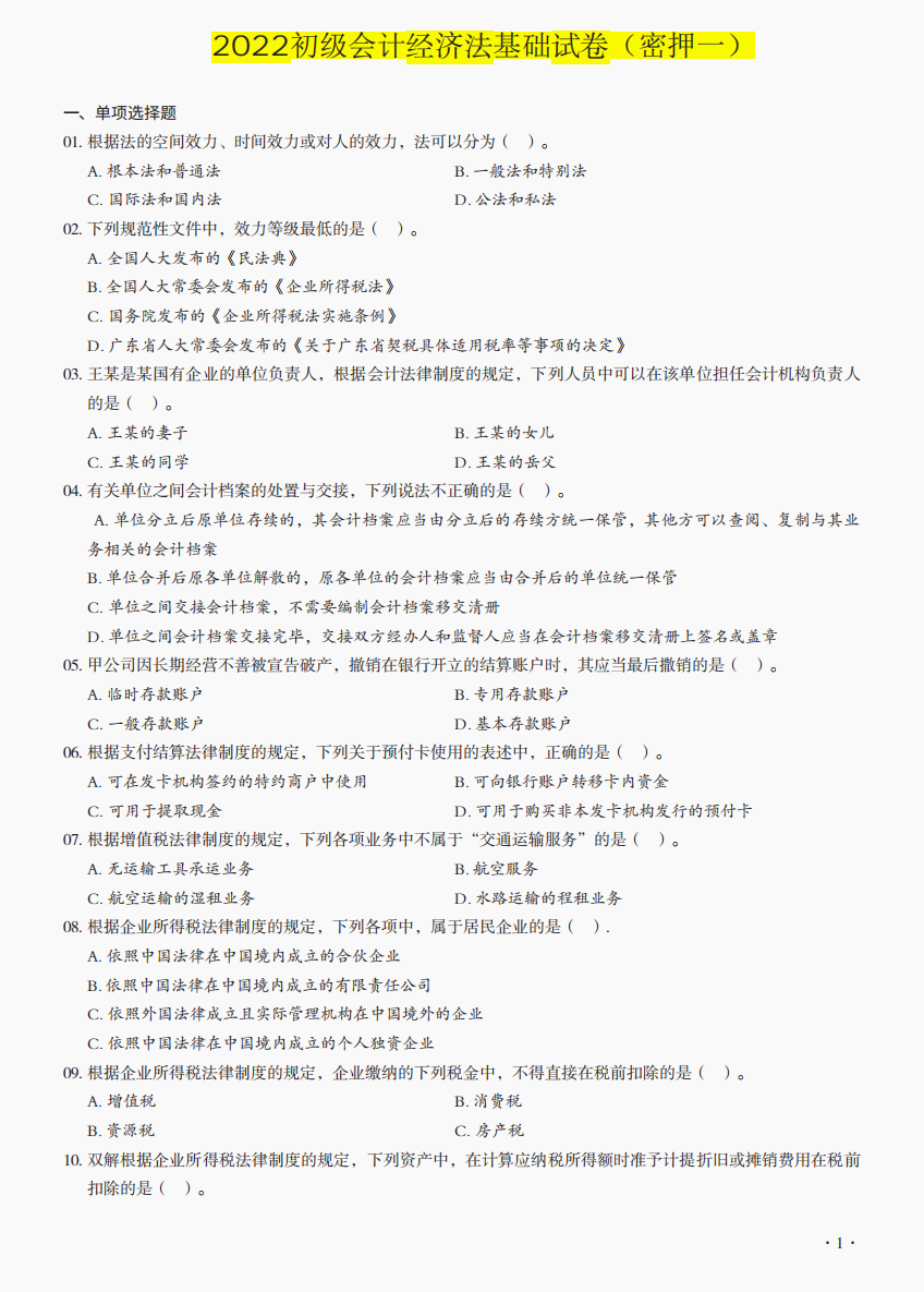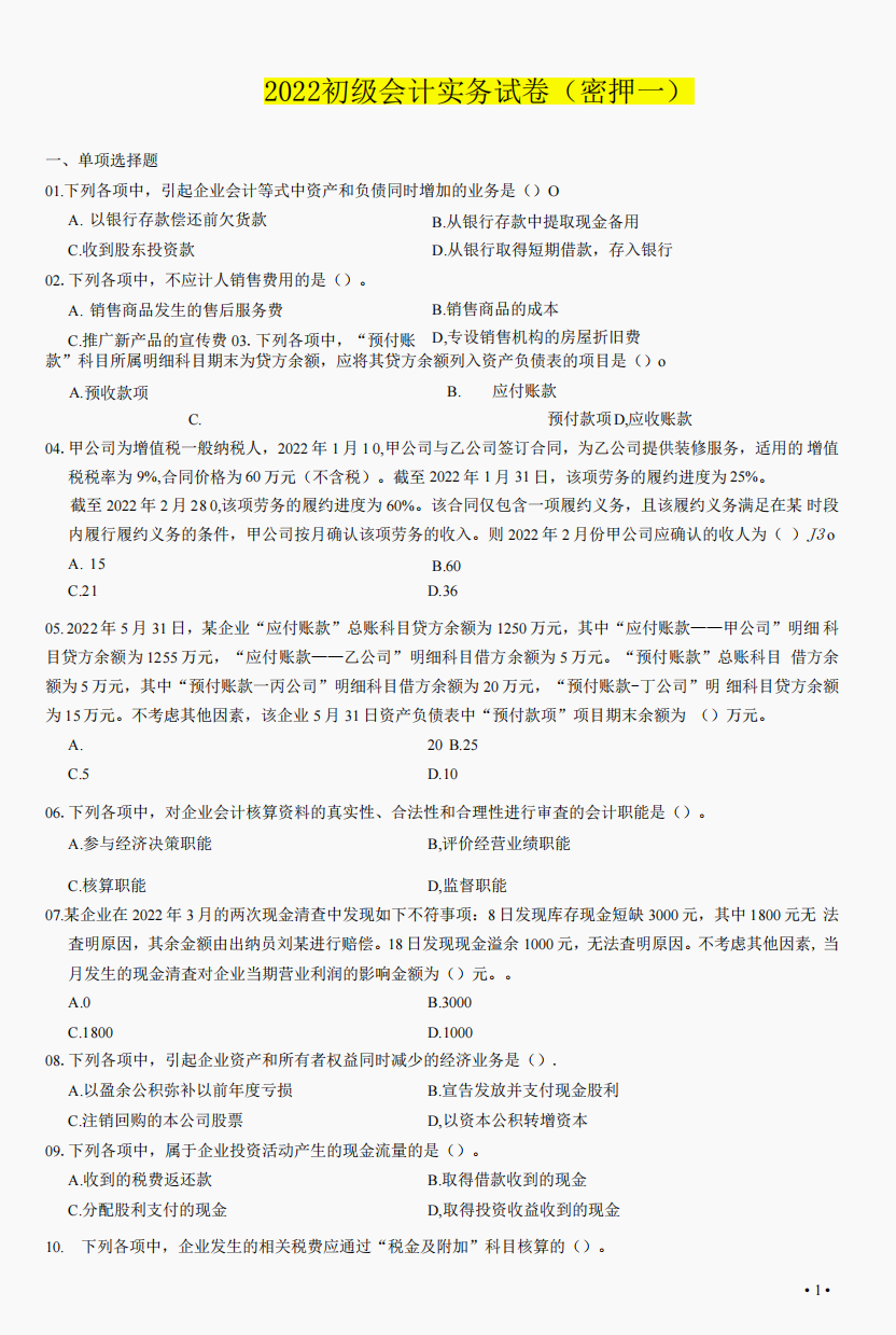 版权声明:我们致力于保护作者版权,注重分享,被刊用文章【会计证题目(2022初级会计必刷6套密训卷附答案)】因无法核实真实出处,未能及时与作者取得联系,或有版权异议的,请联系管理员,我们会立即处理! 部分文章是来自自研大数据AI进行生成,内容摘自(百度百科,百度知道,头条百科,中国民法典,刑法,牛津词典,新华词典,汉语词典,国家院校,科普平台)等数据,内容仅供学习参考,不准确地方联系删除处理!;
