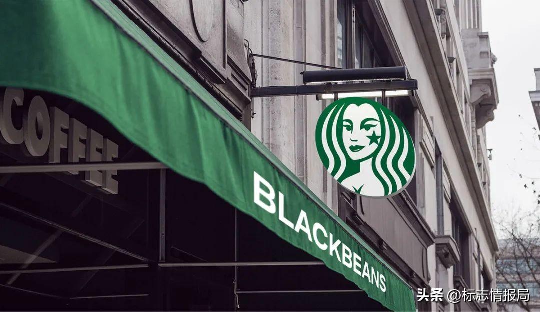 Logotipper 给新的「星巴克」取名为「Black Star Bucks」,其标志的结构和版式与原星巴克绿色图章相似,只是将其更改为黑色。同时将星巴克标志性的「双尾美人鱼」替换成一个戴着墨镜的胡子大叔咖啡纸杯。