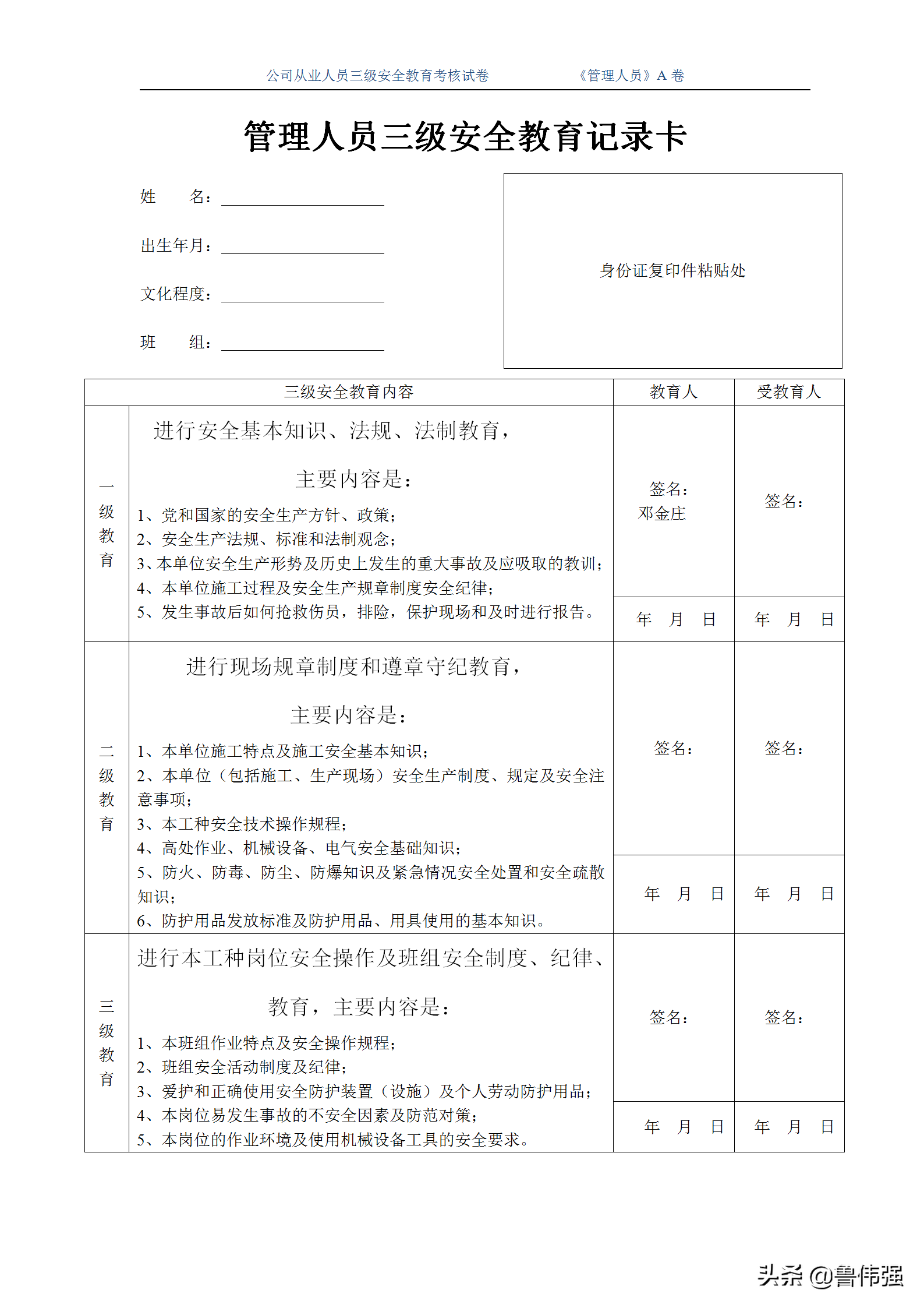 版权声明:我们致力于保护作者版权,注重分享,被刊用文章【每日一案例安全教育活动记录卡(工地管理人员三级教育记录卡)】因无法核实真实出处,未能及时与作者取得联系,或有版权异议的,请联系管理员,我们会立即处理! 部分文章是来自自研大数据AI进行生成,内容摘自(百度百科,百度知道,头条百科,中国民法典,刑法,牛津词典,新华词典,汉语词典,国家院校,科普平台)等数据,内容仅供学习参考,不准确地方联系删除处理!;