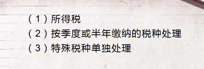 正常月份,企业只需考虑计算增值税及计提的地税税金,但个别月份如季度、年末结束应计算缴纳所得税;根据税务机关要求按季度或半年缴纳印花税、房产税、土地使用税等。