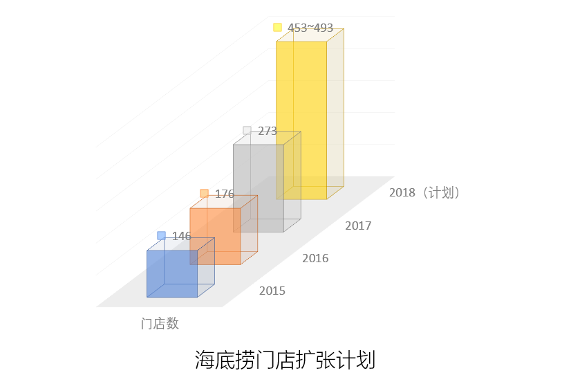 2018年,海底捞计划开出180~220家新店。一方面提高餐厅密度,海底捞计划在翻台率较高或顾客等位时间较长的餐厅周边增加新店,改善顾客就餐体验。另一方面进一步拓展覆盖区域,包括在三线及以下城市开设餐厅。