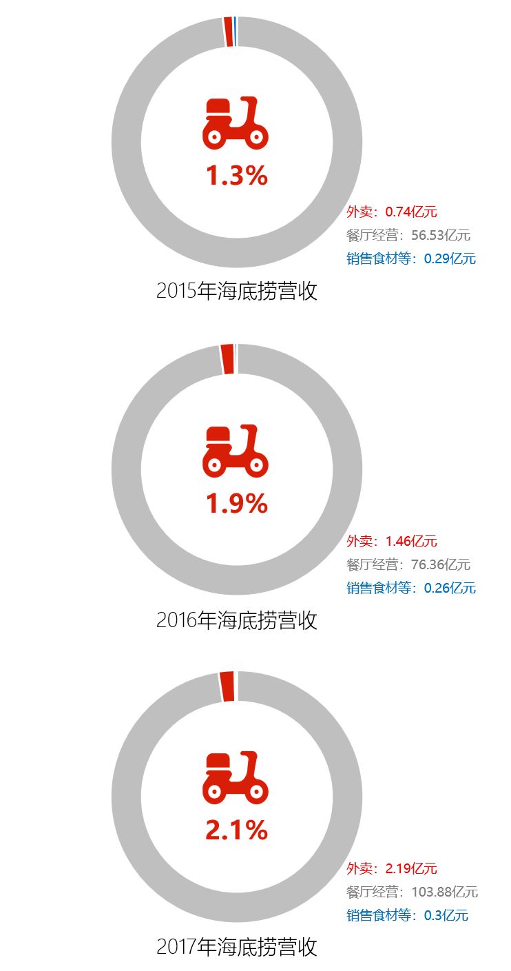 1.餐厅经营是主要收入来源,但外卖也卖了2个亿。