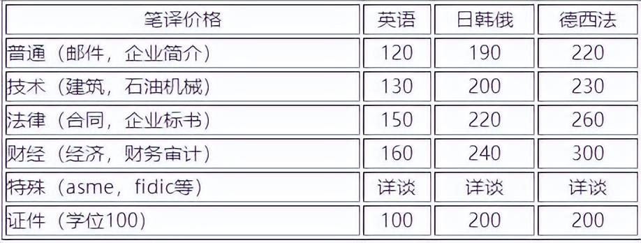 ⏩笔译价格--英语--日韩俄--德西法-蒙: