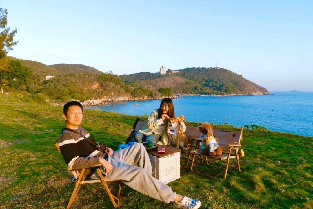 邱麒燃(左)、女友吴洁淳(中)及布丁、嘟嘟