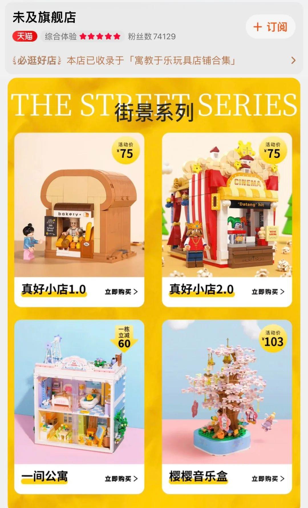 在吐司店成功以后,未及再次围绕“食物店”设计了不少街景系列,包括果冻店、刨冰店、冰淇淋店等。甜食主题和鲜亮配色,吸引了不少年轻女生,不少人一买就是一整套。有的成系列玩具复购率能达到30%。
