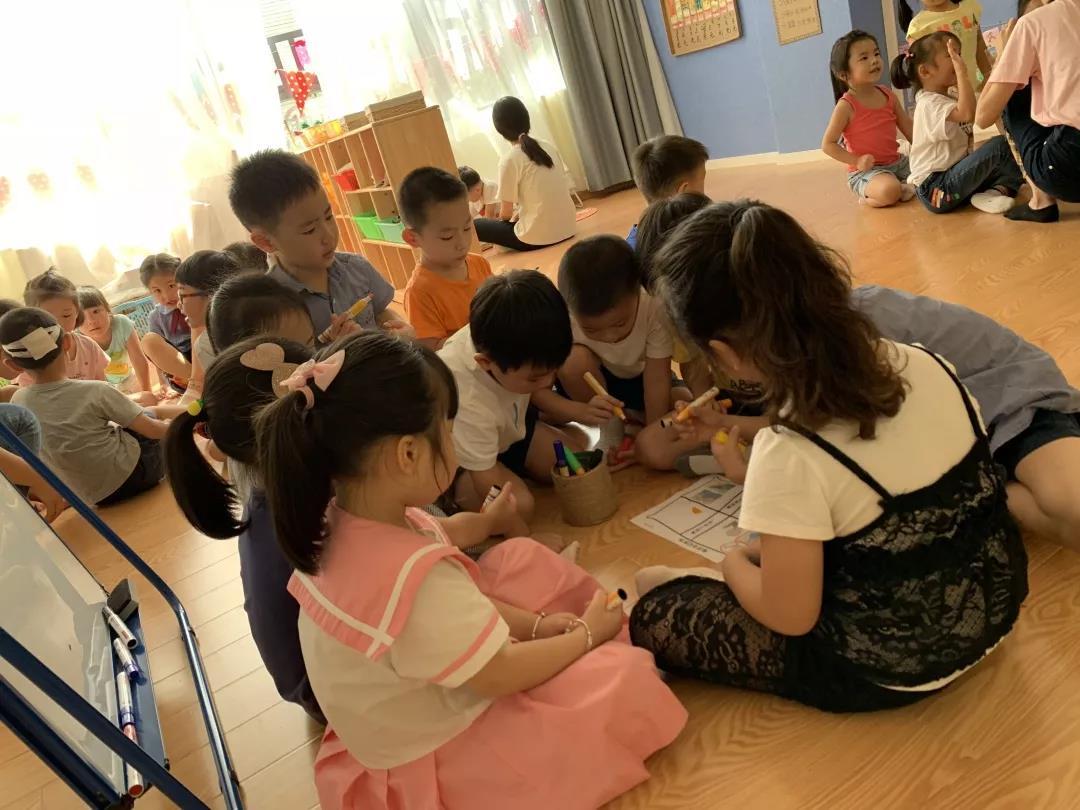 C组小朋友谈论地很入神,我问“每个小朋友都分享了吗?” 一个小男孩非常激动地分享了他的想法,大家听完他的话,纷纷崇拜地望着他,我提议给他掌声,小男孩一脸按耐不住的小傲娇。