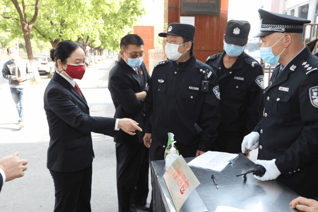 ▲党组书记、院长陈旗,党组副书记、副院长汪和清一行对诉讼服务中心的各项准备工作进行检查