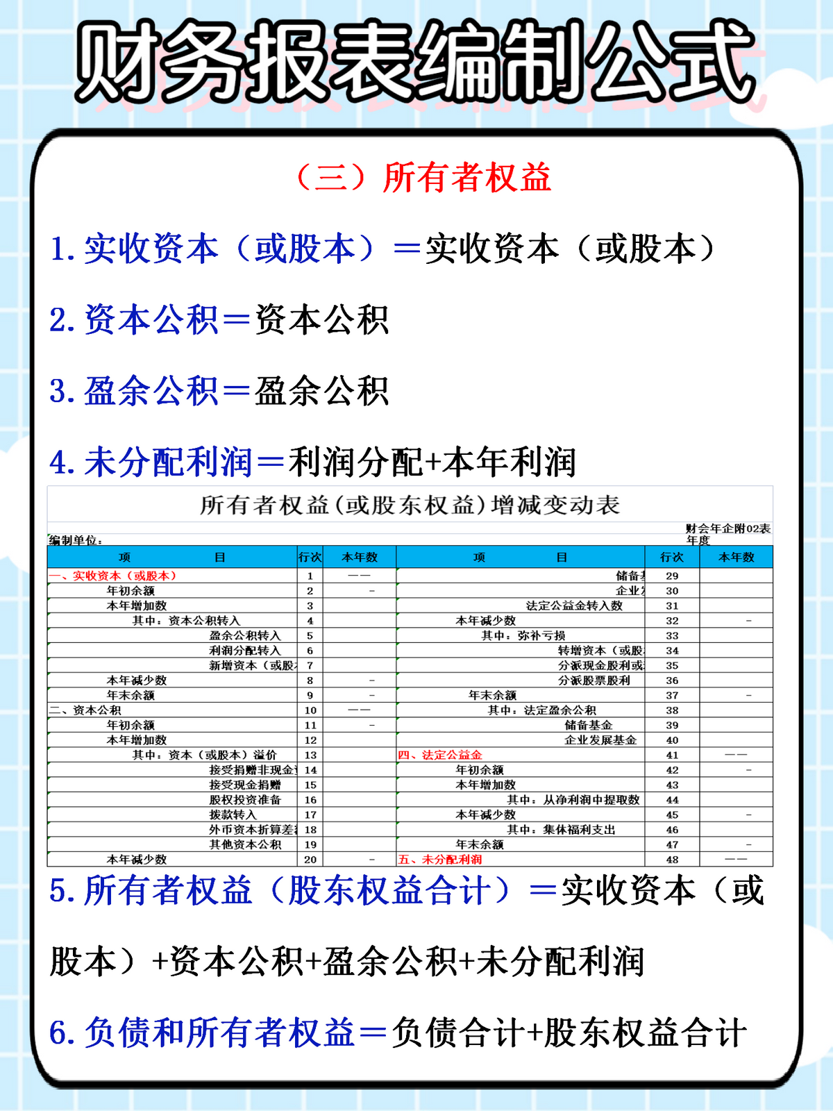 所以带她的老会计实在是看不下去了,就着手整理了一份完整的【资产负债表+利润表编制公式】,还有Excel报表模板,这样以后就不用担心编制财务报表了~