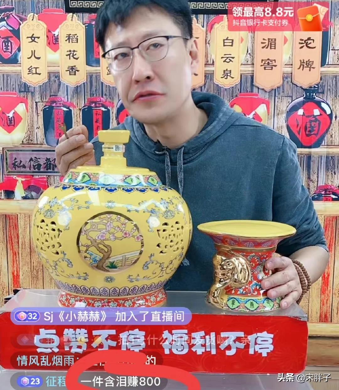 其中一次直播中,于震声称一瓶酒光酒瓶就价值15万,高档琉璃、20g黄金镶嵌,最终以每瓶158元的价格成交了……