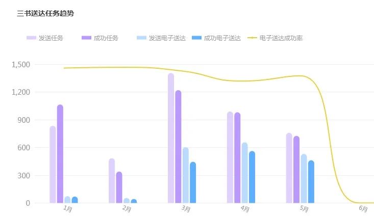 经广泛宣传、积极引导,严格落实文件要求,吉安中院电子送达“三书”成功数从1、2月份各69、44,3至5月(截至5月26日)增加到497、500、462,成功率达91.57%,48小时送达成功率87.06%,电子送达成功平均耗时9.23小时,较邮寄送达快14.8倍,最快的从书记员发起送达任务、送达专员检查到当事人完成签收仅用3.95分钟,节约费用约47550元。