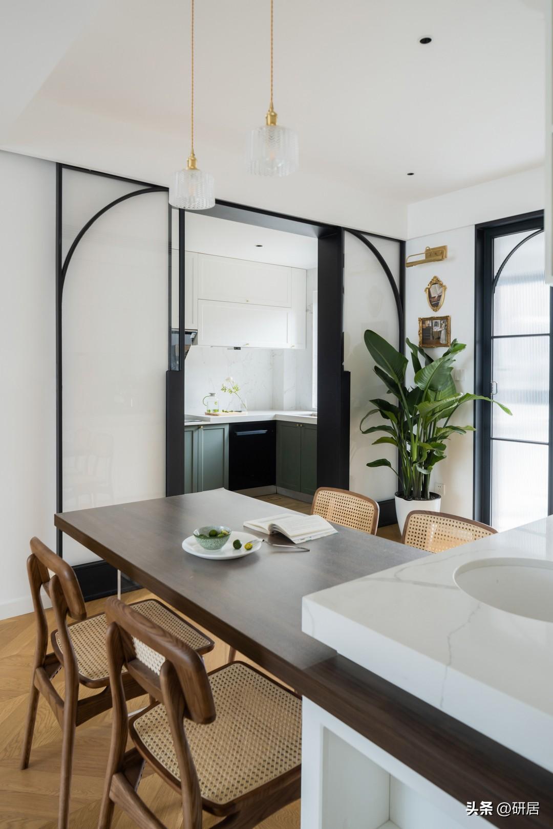 厨房与北阳台都用上长虹玻璃移门,但显然让人感受到更加美观,黑色极简的弧形设计增添了几分优雅,好看又实用。