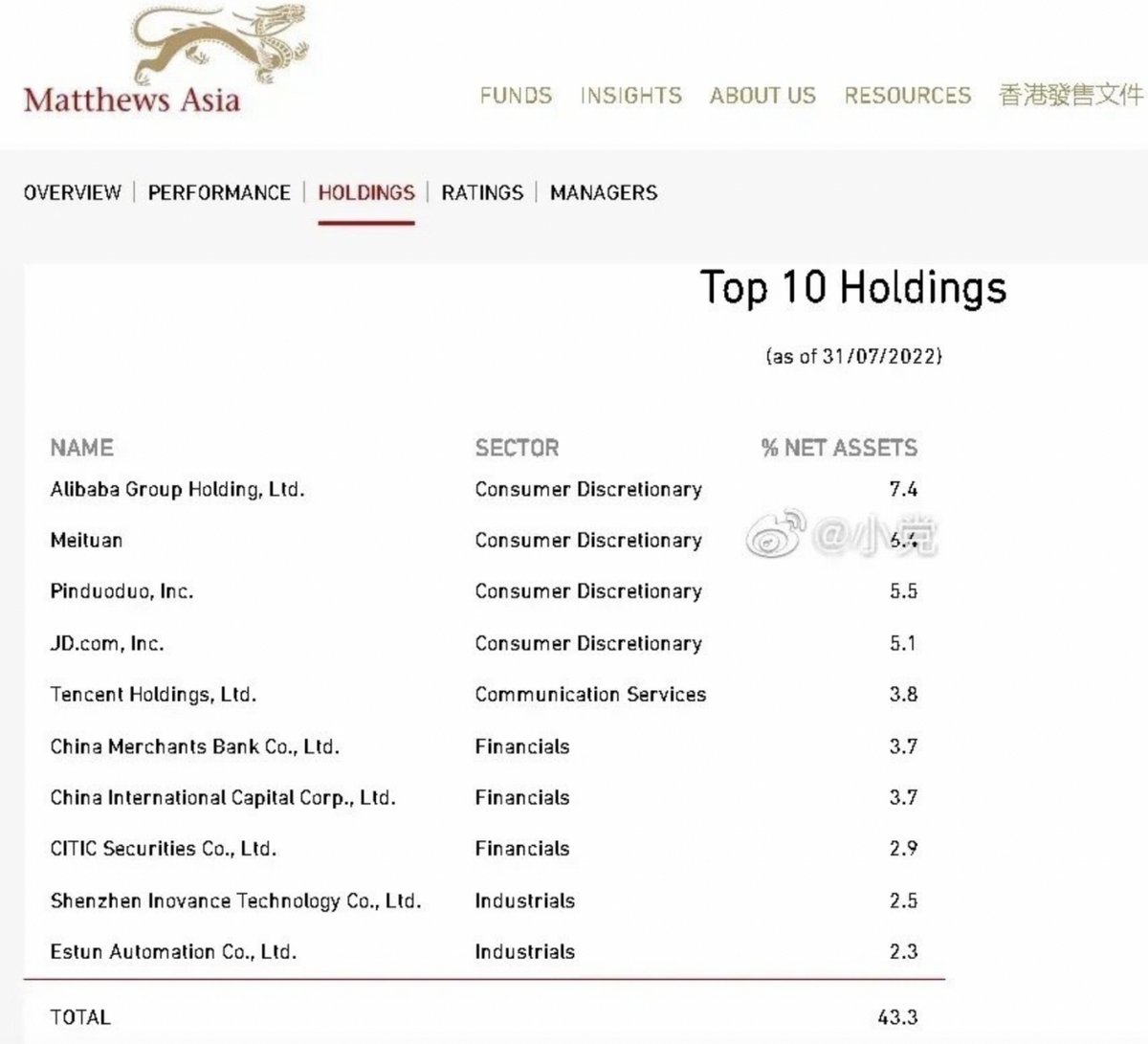 据铭基环球投资(香港)官网披露的资料显示,旗下的“亚洲股息基金”持仓股中50%均为中国企业,其重仓股名单中涵盖了腾讯、京东、拼多多、美团、阿里巴巴等中国企业。