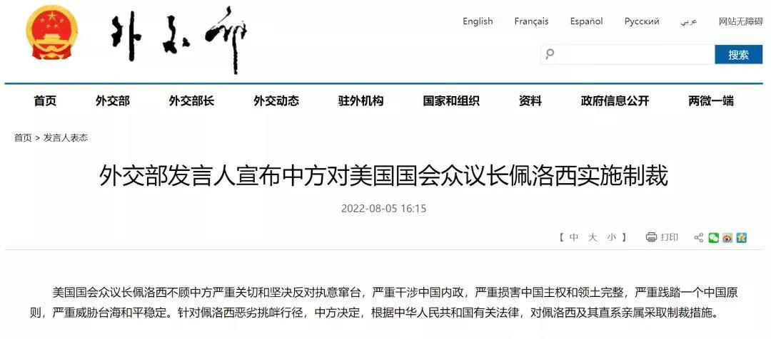 在佩洛西窜犯中国台湾后,外交部发言人宣布,根据中华人民共和国有关法律,对佩洛西及其直系亲属采取制裁措施。意味着,佩洛西家族及其在中国的所有资产都将被制裁,其家族背后的投资基金,大概率也将不能参与中国企业的投资。