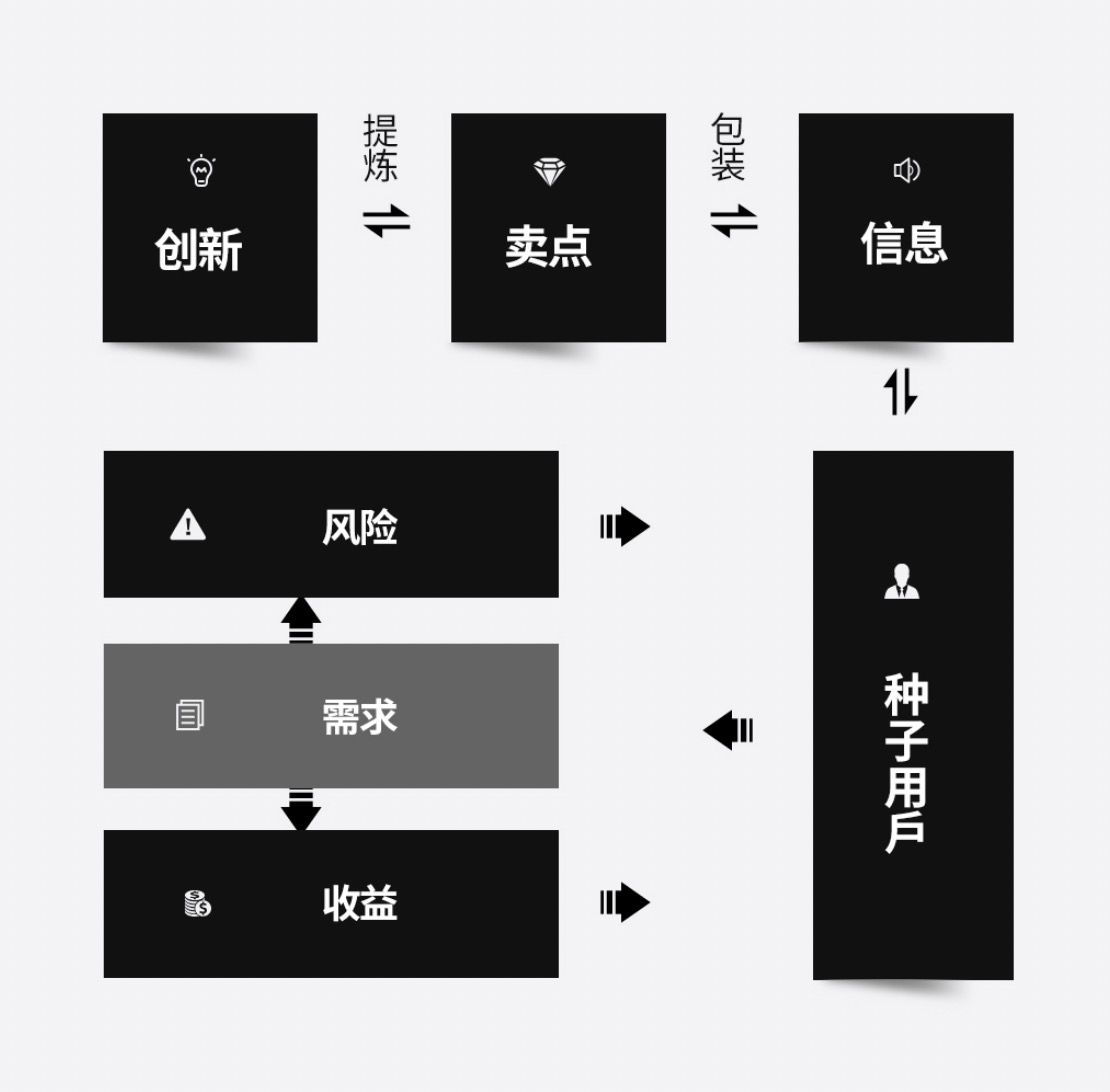 在种子用户的分析框架中,需求与其他的几个元素是密切关联的。信息可以激发需求,信息也可以将具有相同需求的种子用户,从人海里筛选出来。在拥有需求的前提下,种子用户依然会针对风险和收益来决策分析。