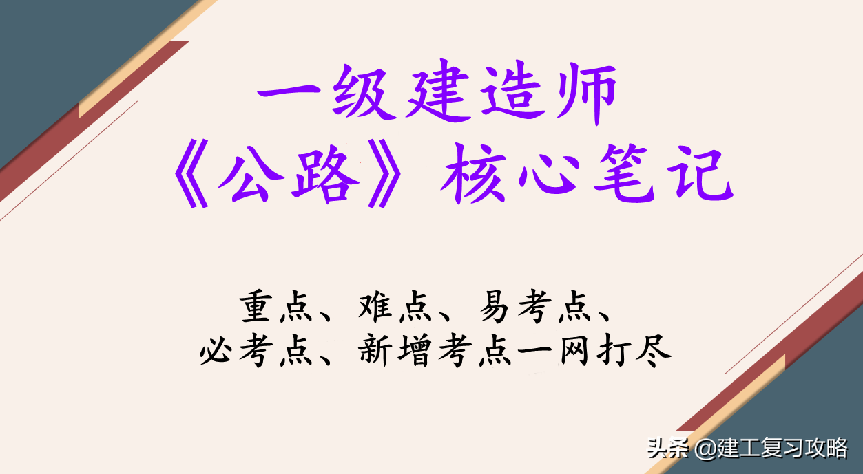 今天整理了一级建造师《公路实务》核心笔记,是专家们翻遍了教材和经典真题手绘浓缩而来,贯穿了选择和案例分析题,都是一建实务考试的采分点,重点、难点、易考点、必考点、新增考点一网打尽。