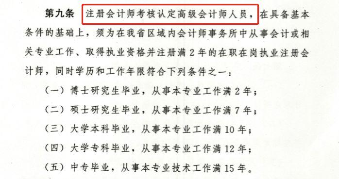 在今年新发布的《关于印发2019年河南省会计系列高级职称申报评审条件(试行)的通知》中,第九条:注册会计师考核认定高级会计师人员,满足条件就可直接进行评审。