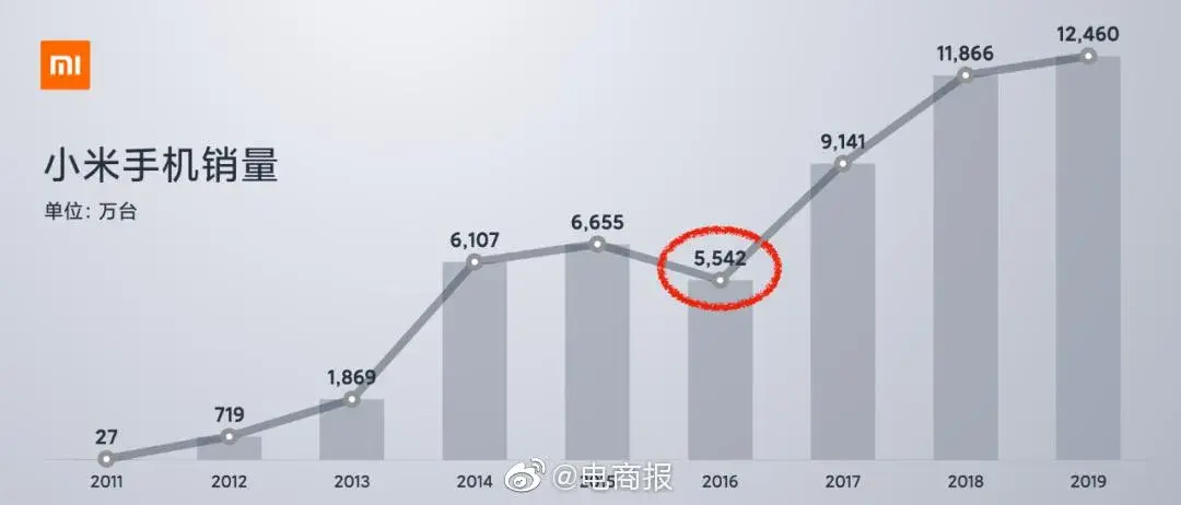 在粉丝疯狂的口碑传播推动下,小米手机的销量从2011年的27万台,一路飙升到2018年超过一亿台,2019年达到1.246亿台,市场份额一度在国产智能手机中遥遥领先。