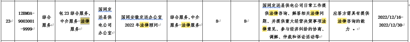 包23国网安徽定远办公室2022年法律顾问;