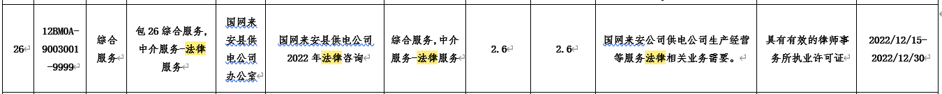 包26国网来安县供电公司2022年法律咨询;