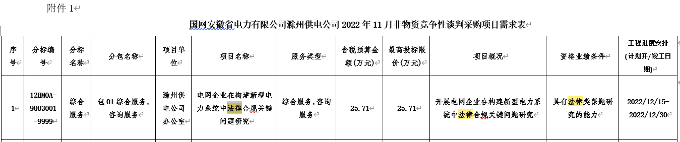 2.1项目名称:国网安徽省电力有限公司滁州供电公司2022年11月非物资竞争性谈判采购。