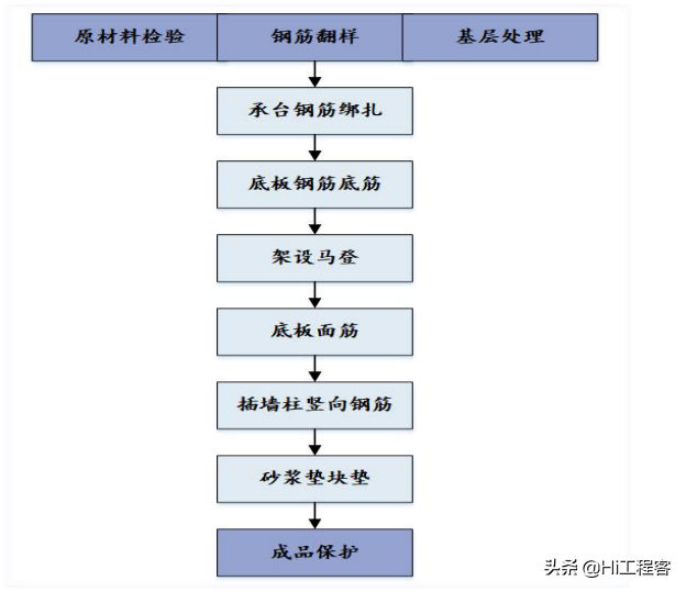 底板钢筋工程量大,穿插复杂,必须注意施工顺序: