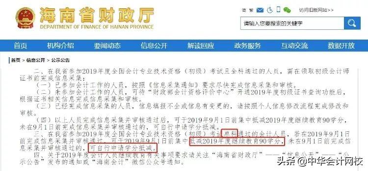 2、 9月1日前未完成信息采集的,即使只用初级一科,也可以抵2019年继续教育90学分,即不必参加今年的继续教育了。但是,需要向财政厅提出申请。