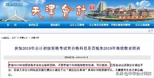 参加2019年初级资格考试有合格科目的,不需参加今年的继续教育培训,可以抵免,已经自动记录到会计诚信平台,登录天津会计网站首页面左侧会计诚信平台“诚信信息查询”查询打印结果就可以,不需要考生自己申请确认。