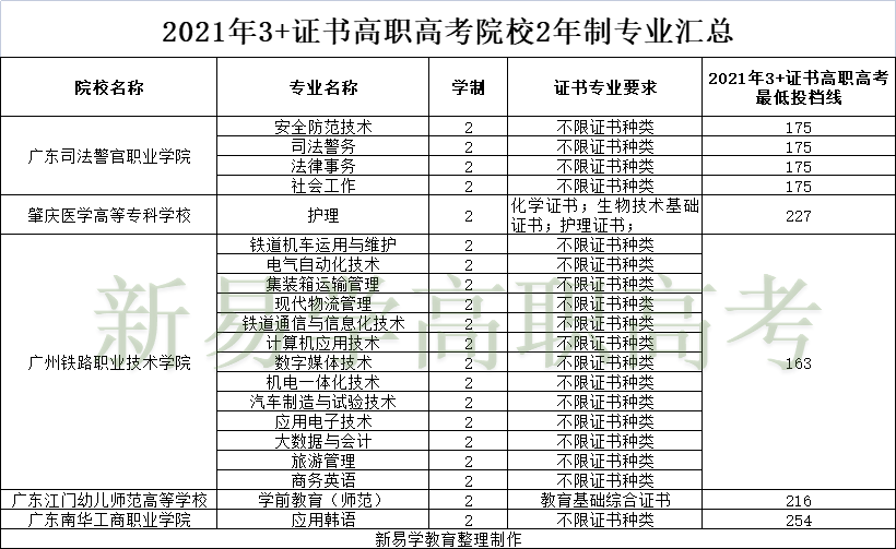 新易学小编根据院校及2年制专业整理了以下表格,大家可以作为参考: