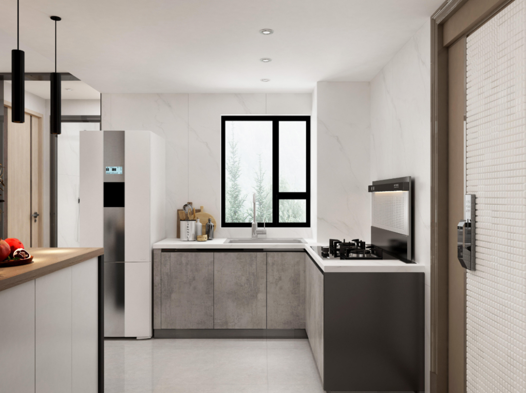 细节上以简约的线型为主,搭配浓淡有致的色调和大理石瓷砖元素,构建优雅简洁空间,增添整体家居的高级质感。