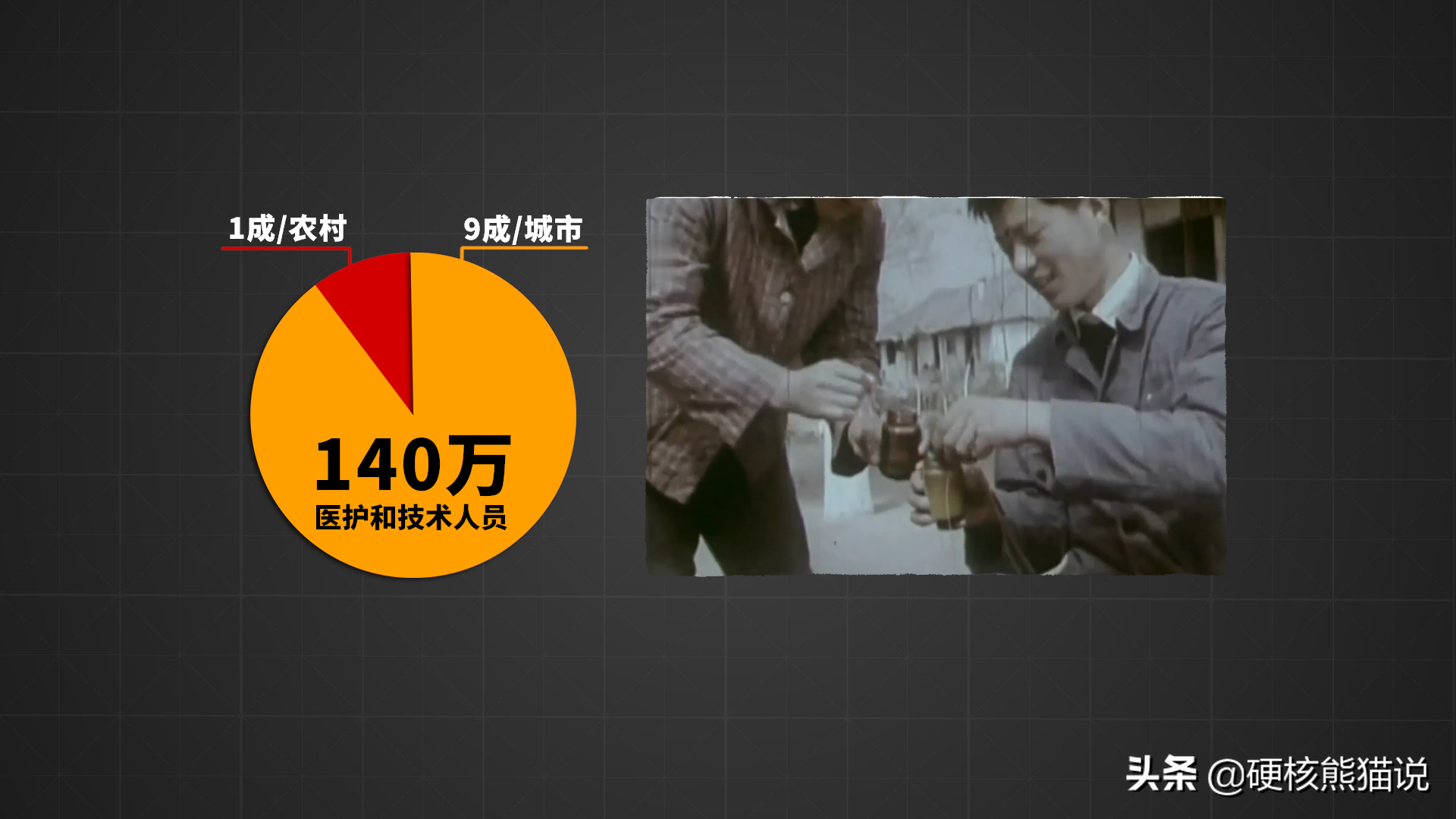 当时全国有140多万医护和技术人员,但是其中9成的高级医务人员,被安排在城市,而农村的医疗资源仅占1成。