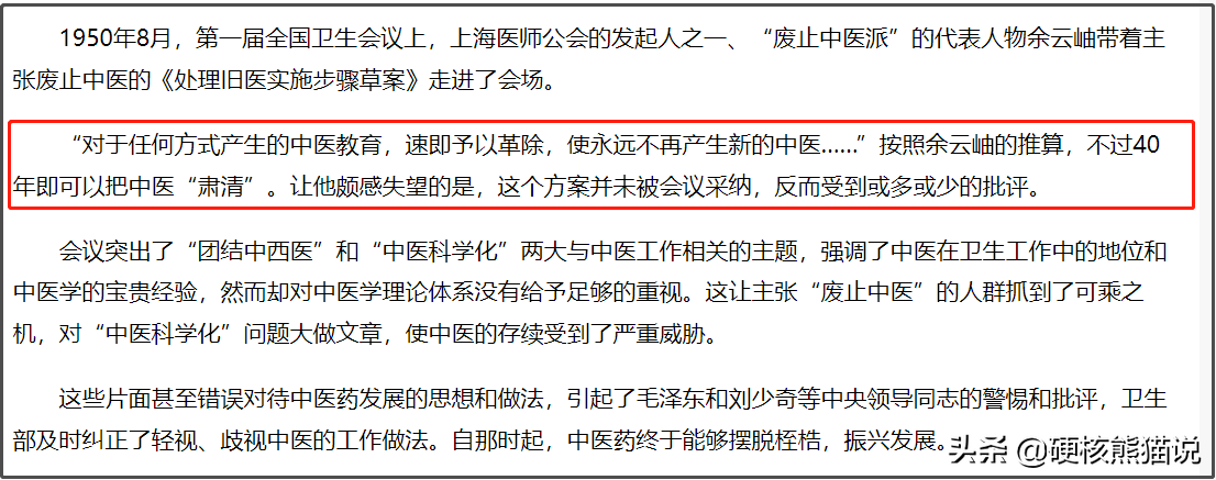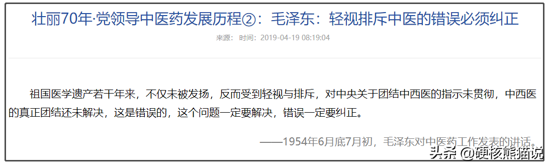 后来在面对中西医的定位问题时,伟人又说西医应该学习中医,而不是中医学习西医,一举奠定了后来中西医结合的道路。