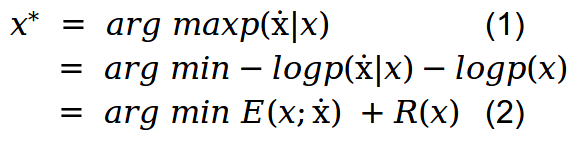 E(x;ẋ)是数据项,它是似然的负对数,R(x)是图像先前项,它是先验的负对数。