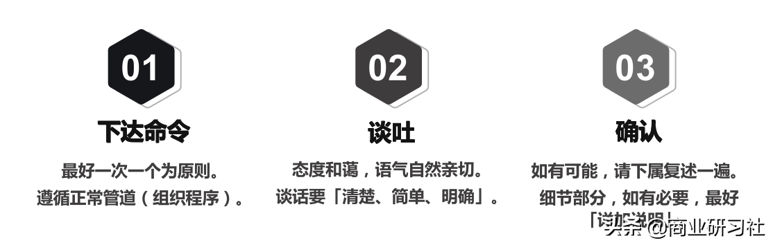 向下沟通的要诀:当你向下沟通时,通常是指你用口头向你的属下下达命令指正或指导他们怎样做事。