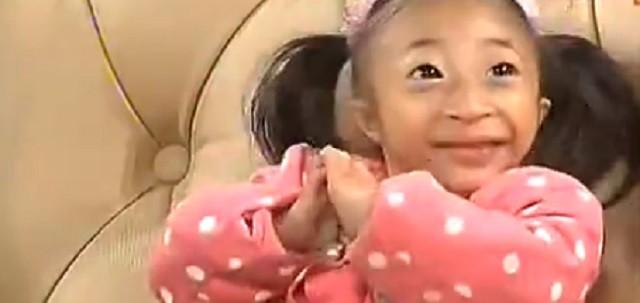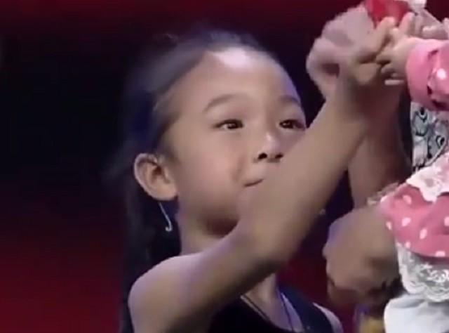 刘兴莲在小小四岁的时候,带她去上节目,小小双目发光,在观众鼓掌时表现出兴奋的情绪。