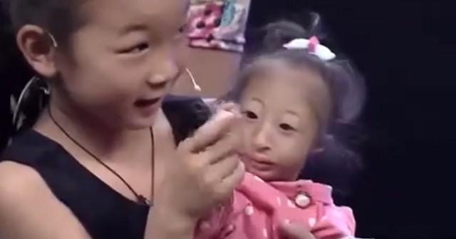 她的同学对小小的模样很是不解,娅梅就会耐心地解释:“我的妹妹是生病了,才会变成这样的。”