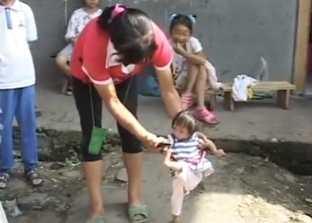三岁的她其实连路都走不了,但还是跟着音乐挥舞着双手,“跳起了舞”。