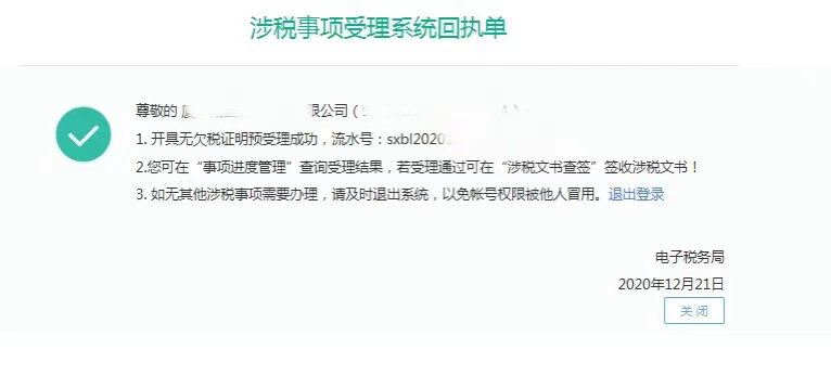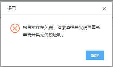 1.若纳税人存在欠税情况,系统将提示您目前存在欠税,请缴清相关欠税再重新申请开具无欠税证明;
