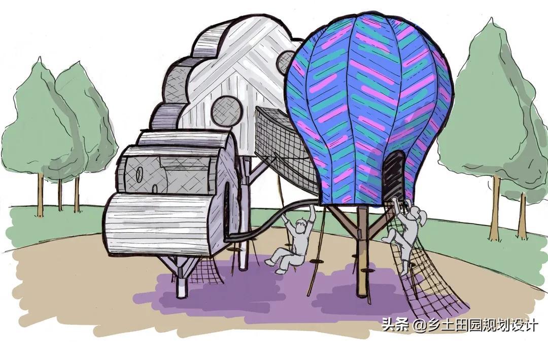 儿童活动环境应是让儿童自由发挥想象和玩法的空间,同时需要考虑家长休憩区与儿童游乐区的位置。孩子们玩累了,躺网设计让大人和孩子们都可以慢悠悠的躺在网上休息。