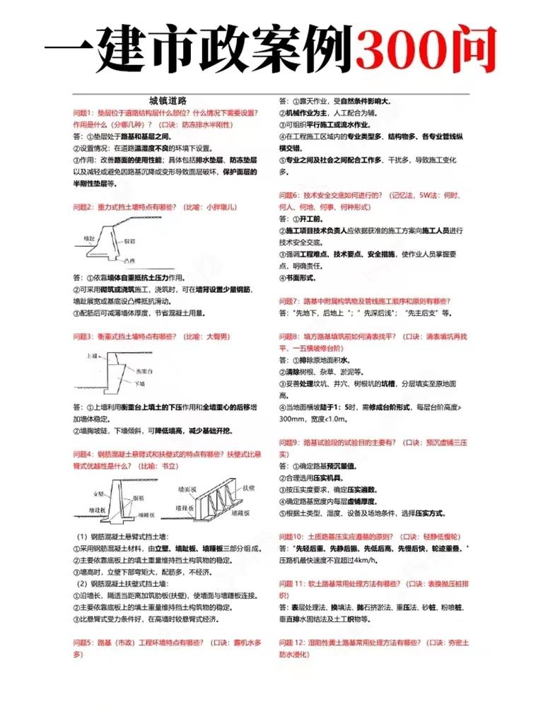 胡宗强老师从今年书本内容,总结出来的300道简答案例分析题,把课本上95%的考点,总结在这里面。每个问题都有详细的解析说明,都是重要考点。背熟这市政300道简答题,考试闭眼过
