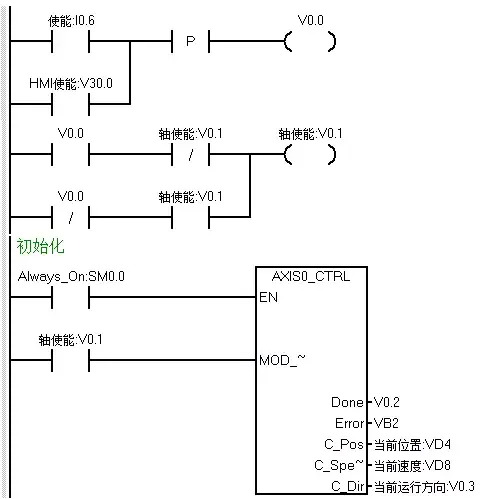 接着使用单按钮的方式编写轴使能程序 HMI及硬件按钮均可使能