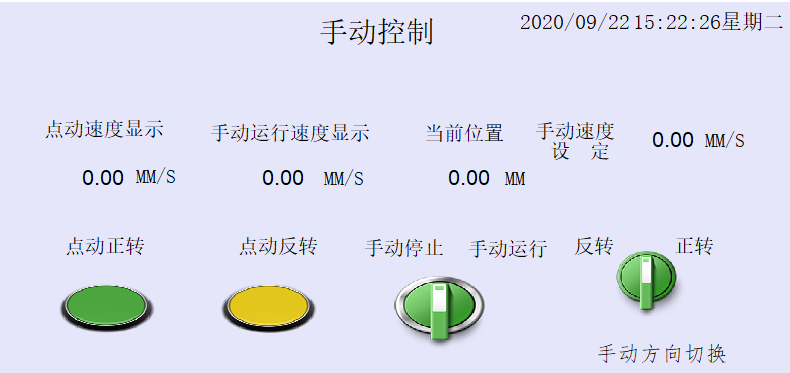HMI手动控制画面显示当前位置、点动速度、手动运行速度及设置手动运行速度