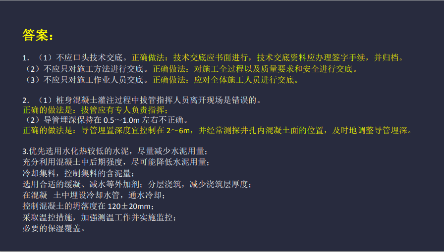 一建市政10道经典案例题每一个答案解析格式完全参考真题,先表达观点再陈述理由,并且用黄色字体标注出重点理解记忆部分,咱们背下来再考场就能直接用。