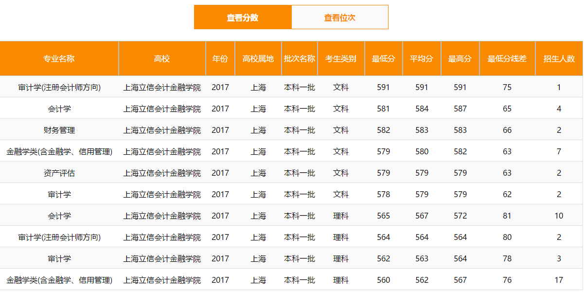 从录取数据我们可以看到会计学、金融学录取分数非常高,这个分数在河南省甚至可以上211了。
