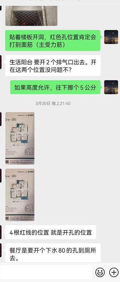 可能是出于担心,这位业主每天都要询问一些结构安全问题,比如框架梁和承重墙开洞要注意避开哪些位置?为什么要这么做?如果碰到钢筋了会有什么后果?我也在思考该怎么从专业角度向客户解释有时候楼板上砌墙是有安全隐患的。