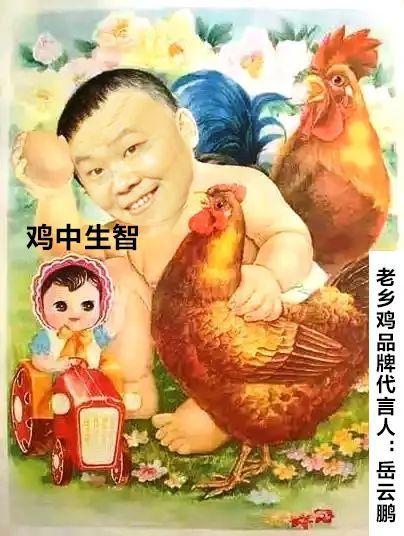 9月1日,岳云鹏发微博称“期待我们自己的快餐品牌能早日走向世界,@老乡鸡我为你代言,咯咯哒!”并配上恶搞年画娃娃的代言海报。画风清奇、画面诡谲,若不是海报右下角标明「老乡鸡品牌代言人:岳云鹏」,还真以为这又是一个包袱。