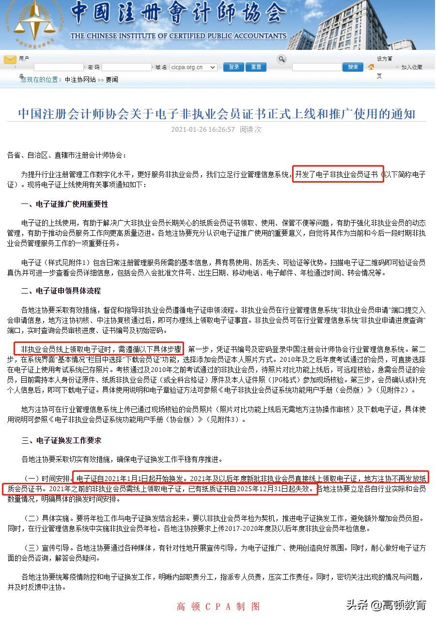 这里,高顿CPA小编还要提醒大家的是,最近,注册会计师非执业会员证书同样实行了电子化。一起了解一下中注协的原文吧: