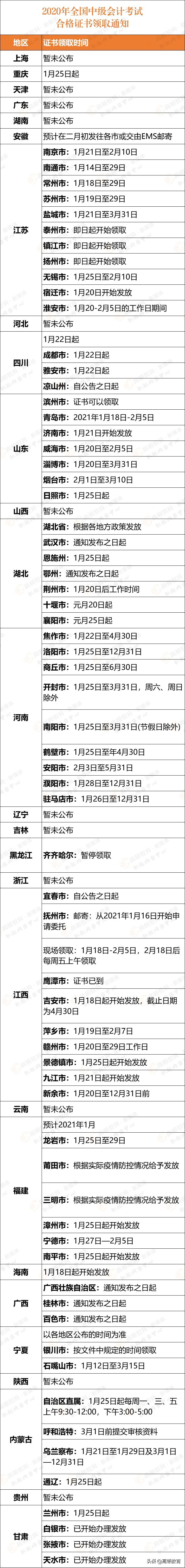 言归正传,接下来看看各地区2020年中级会计证书的领取情况吧!