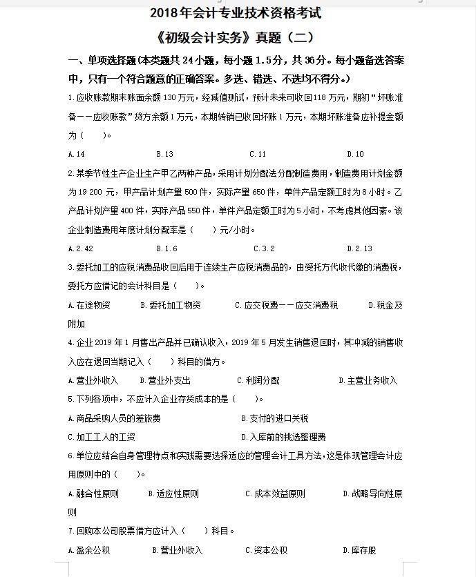 相信真题的重要性一定不需要我再多说了,备考初级会计一定要准备近5-10年的真题,坚信一个道理,如果这5-10年的真题,你都能吃透,高分通过初级会计考试就绝对不会有问题。
